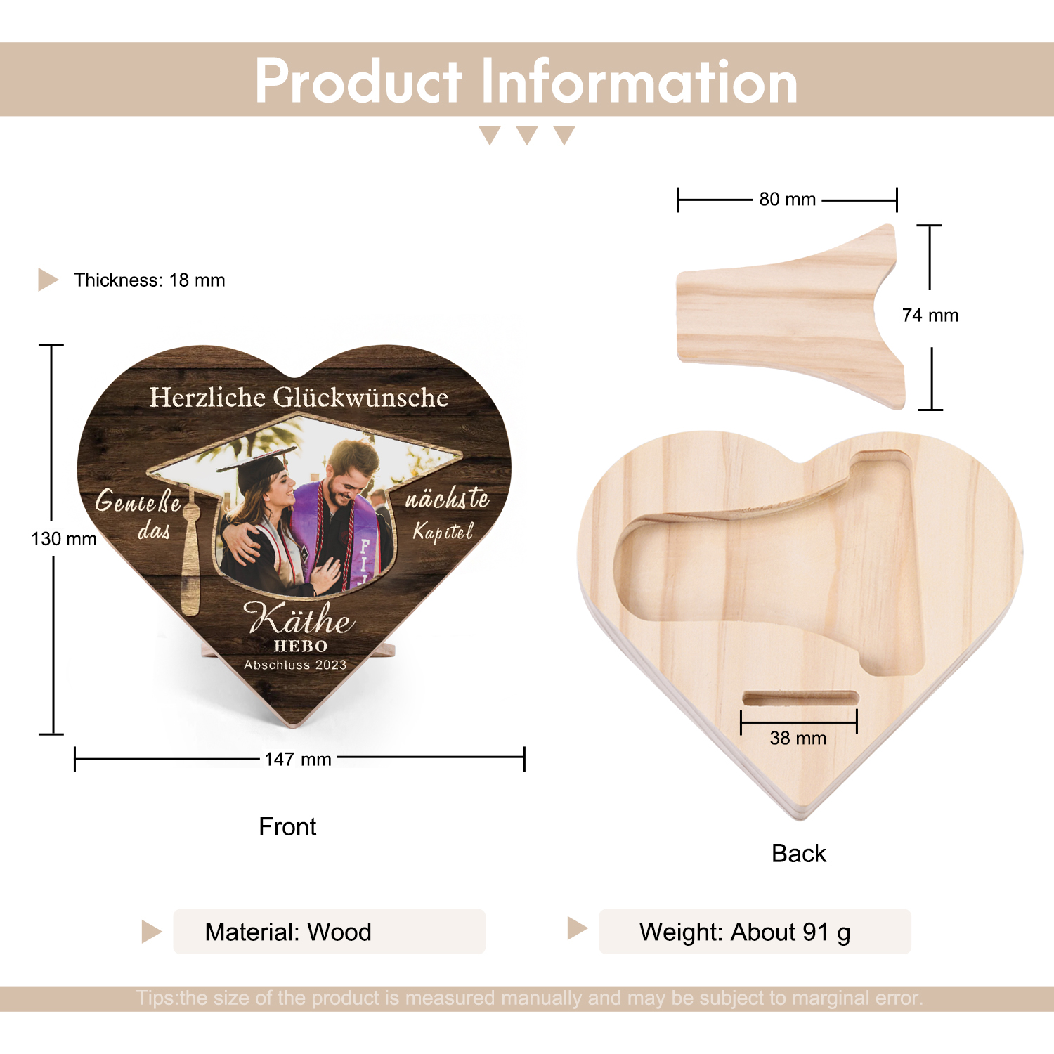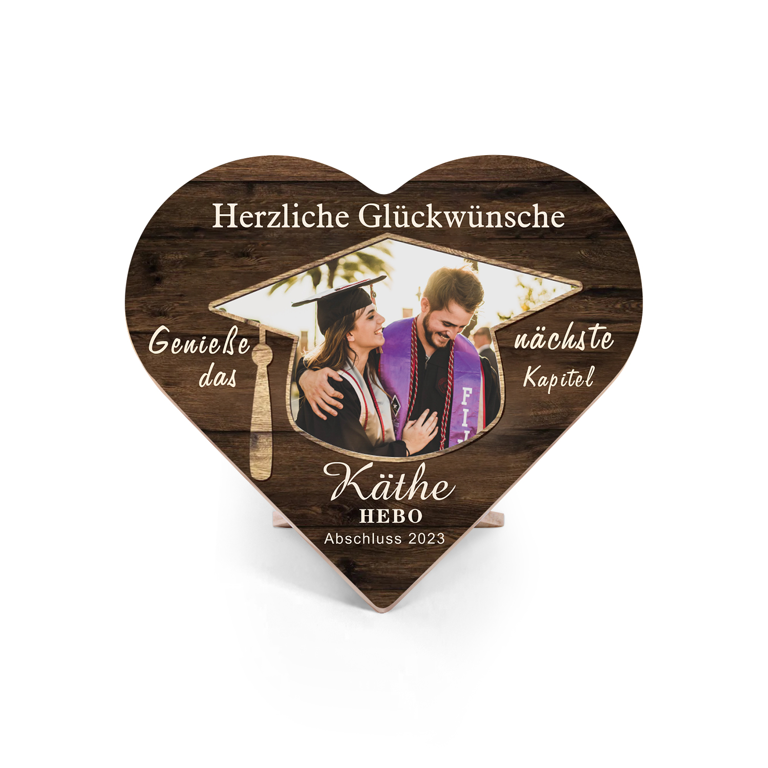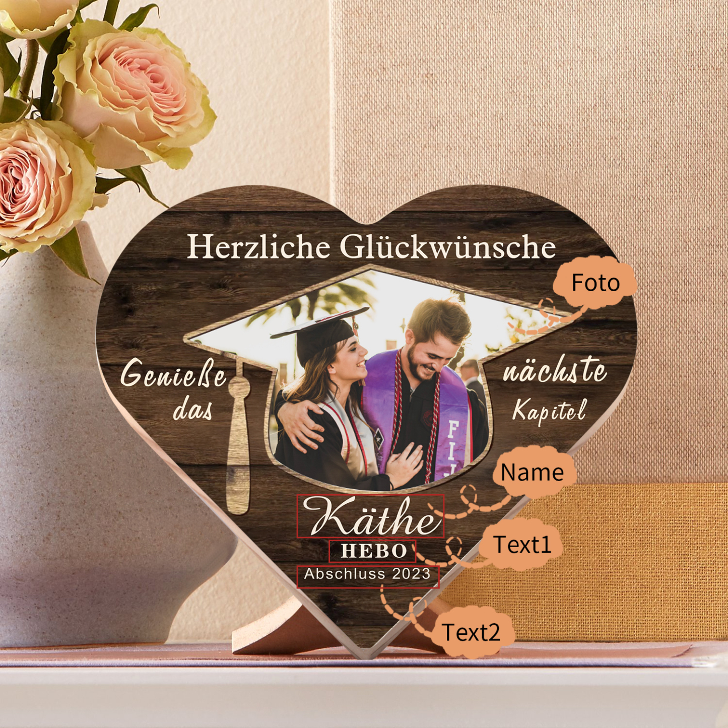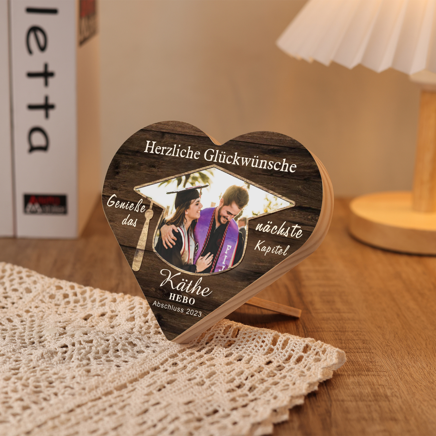 Personalisiertes Name & Foto & 2 Texte Abitur Herzholz-Deko-Genieße das nächste Kapitel