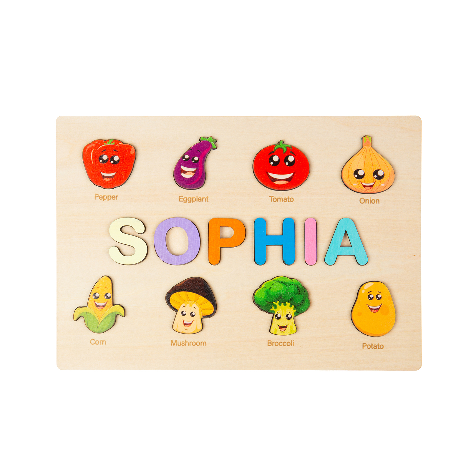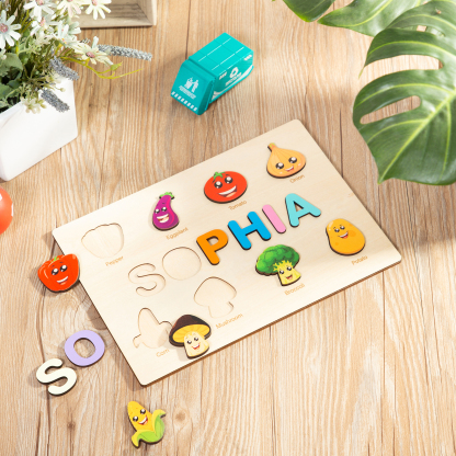 Personalisiertes Name Gemüse Holz Puzzle Geschenk für Vorschulkinder