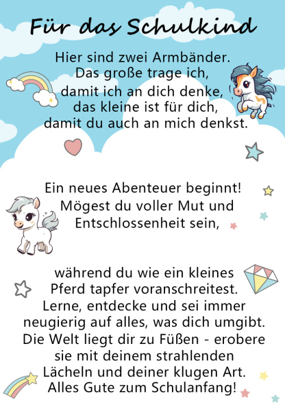 Pferd Armbänder Set mit 2 Ketten-Mögest du voller Mut und Entschlossenheit sein, während du wie ein kleines Pferd tapfer voranschreitest-Schulanfang Geschenk mit Nachrichtenkarte