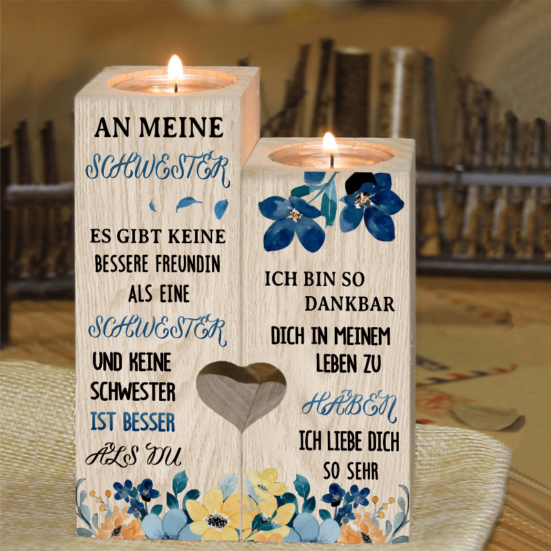 Quaderform Kerzenhalter-An Meine Schwester ich bin so dankbar, dich in meinem Leben zu haben-Holz Kerzenständer für Schwester