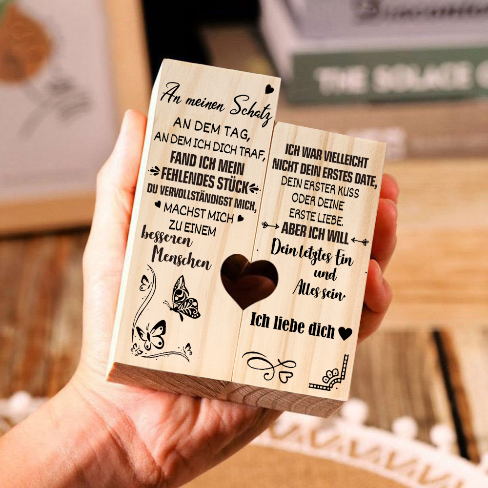 Quaderform Kerzenhalter-An meinen Schatz Ich will für alles deine Letzte sein- Holz SchmetterlingTeelichthalter für Paare