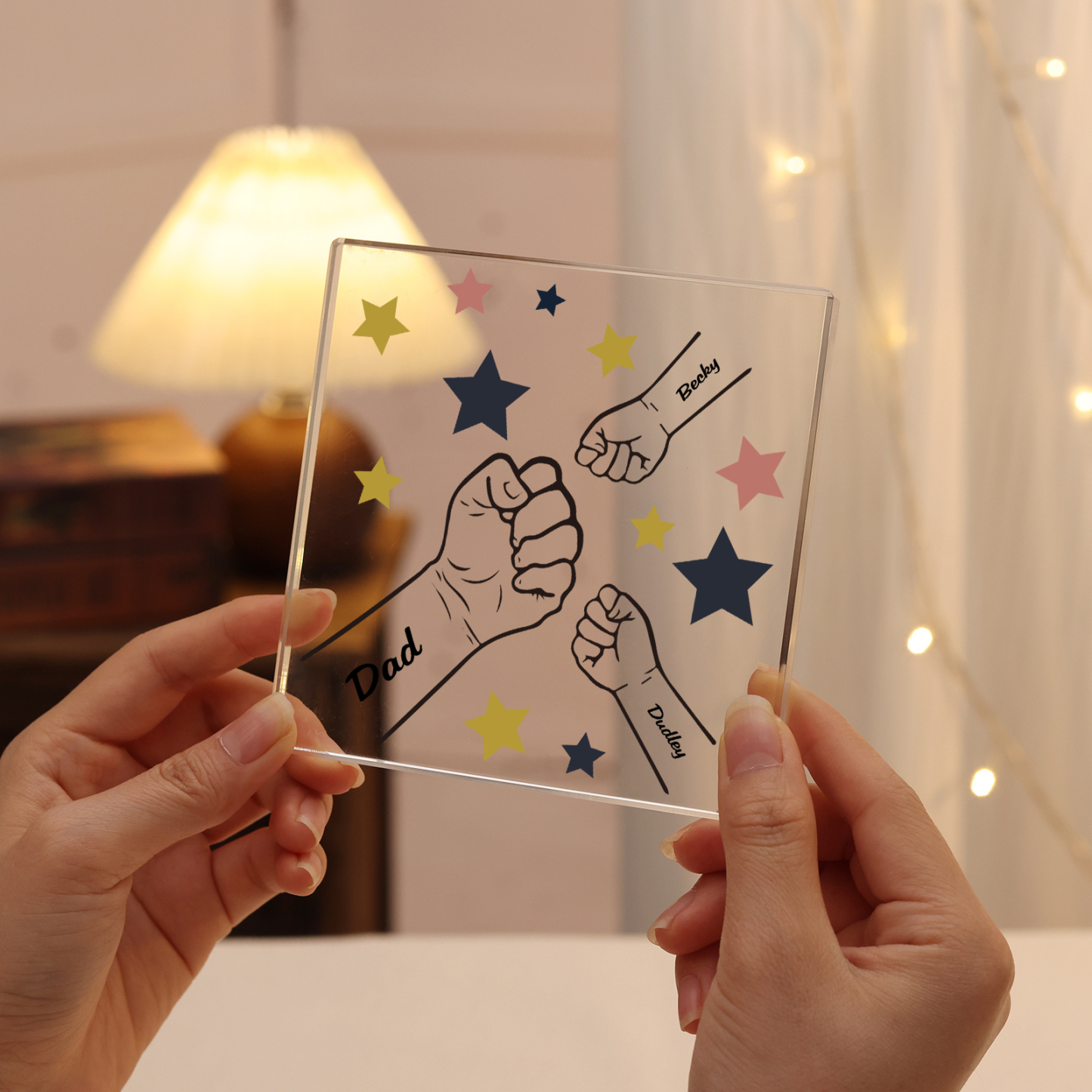 Quadrat Acryl-Deko Personalisierte 3 Namen Fauststoß Schreibtischdekoration für Vater/Großvater