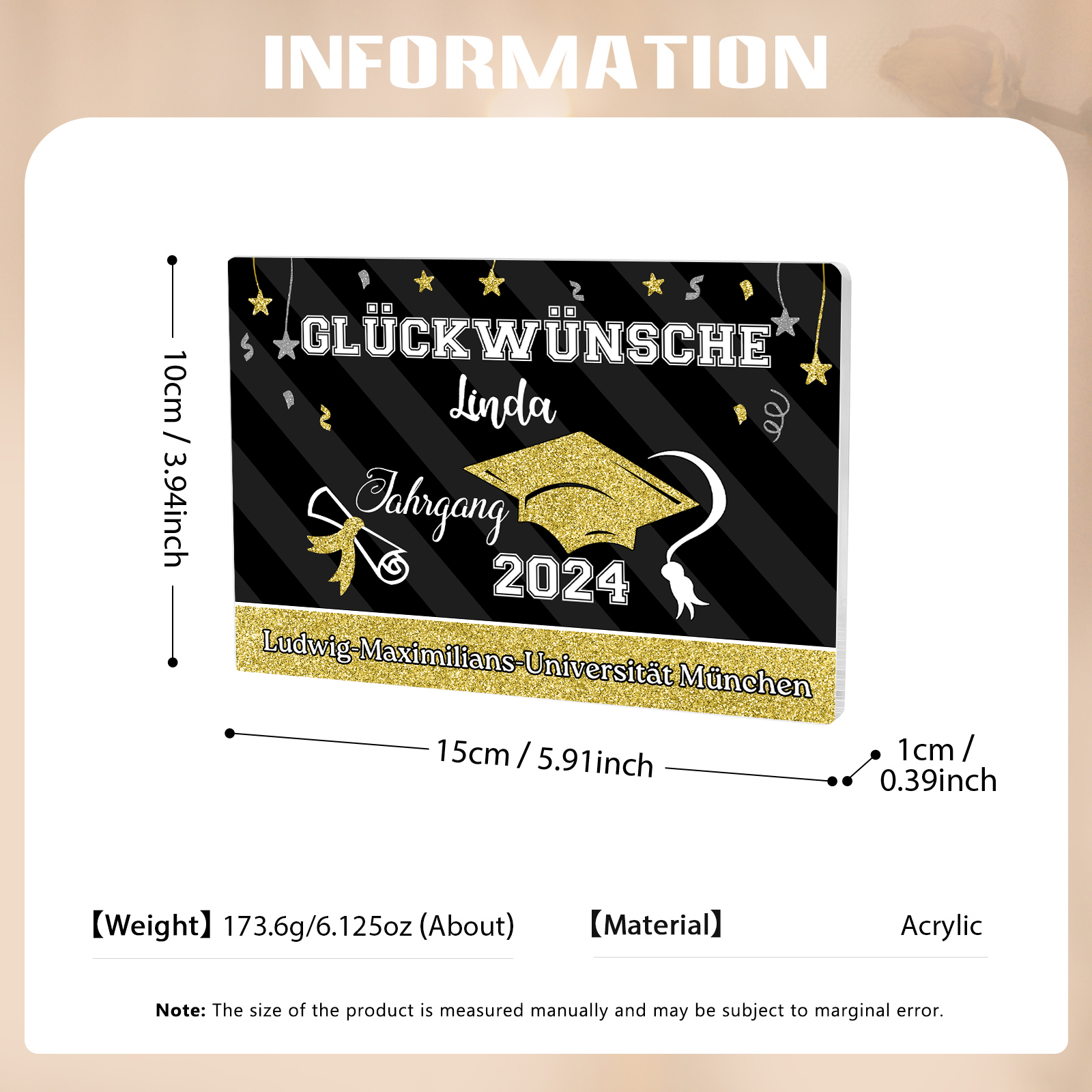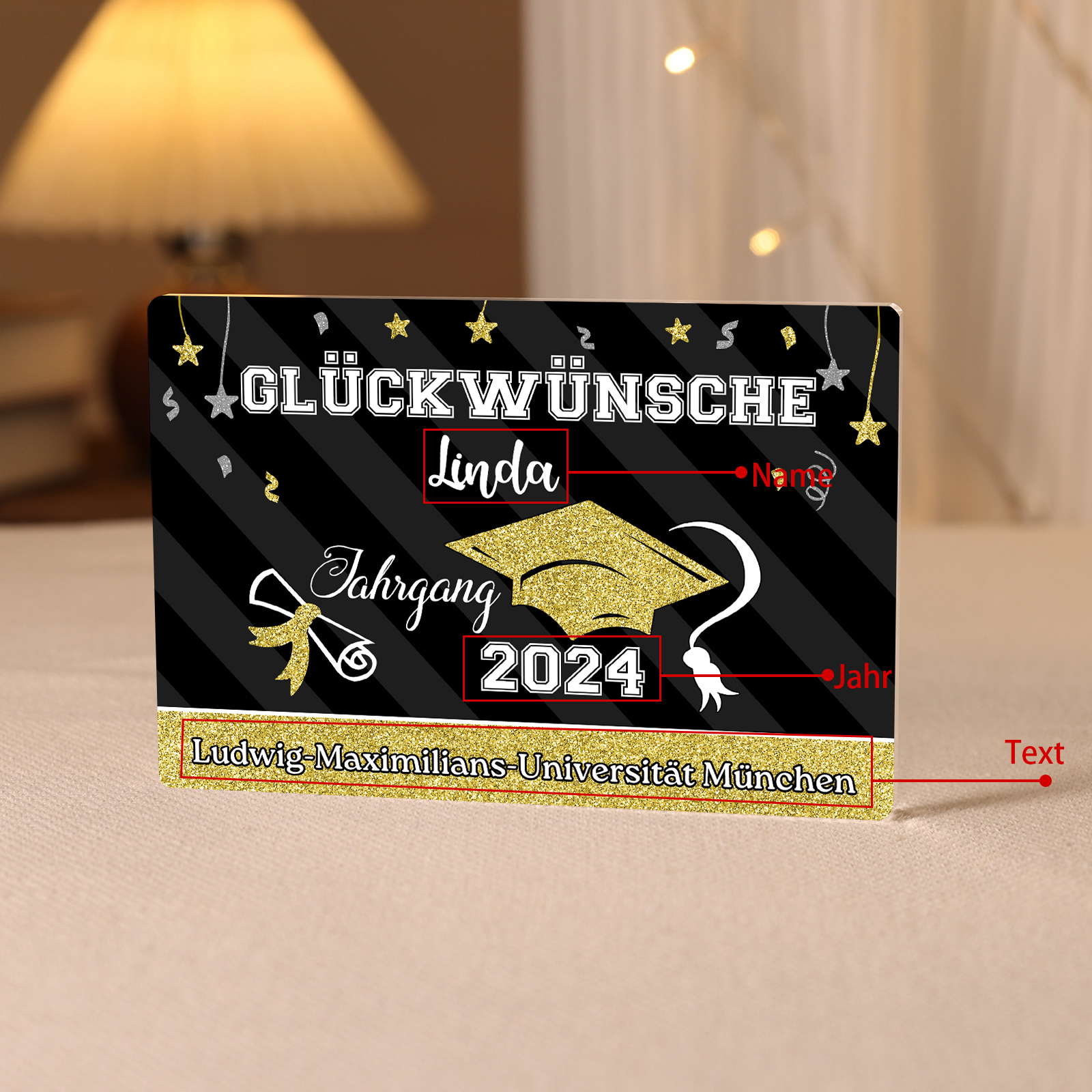 Rechteck Acryl-Deko Personalisiertes Foto & Name & Jahr Text Schreibtischdekoration zum Abschluss