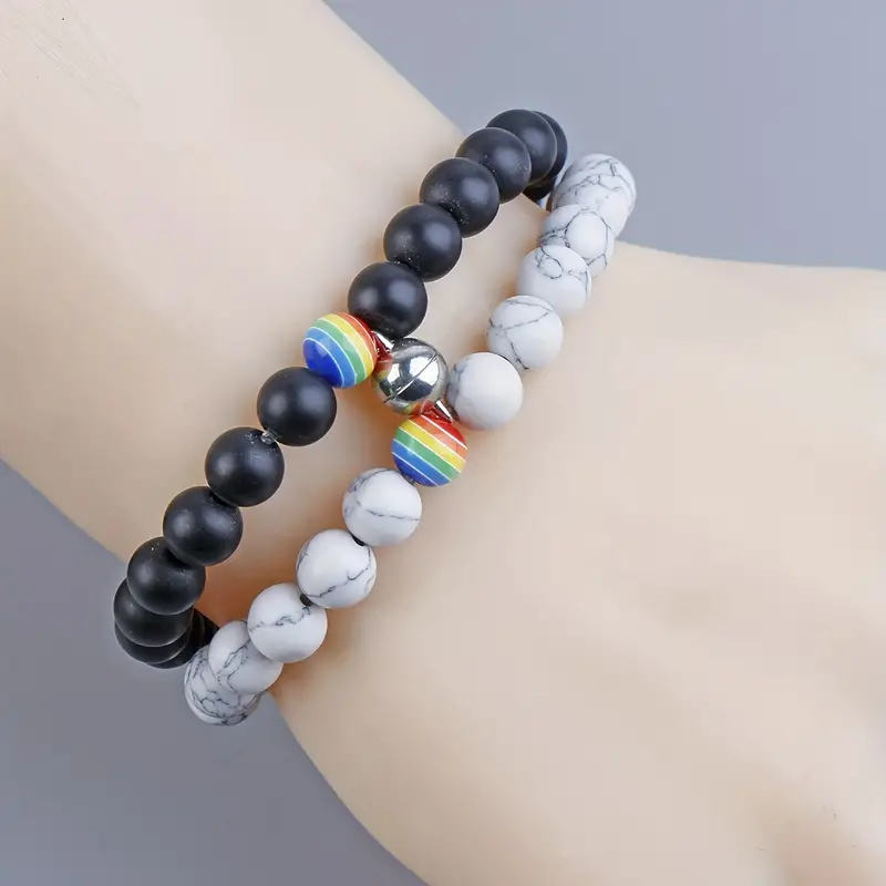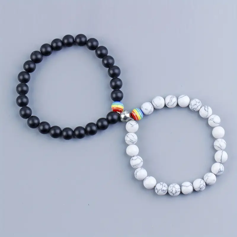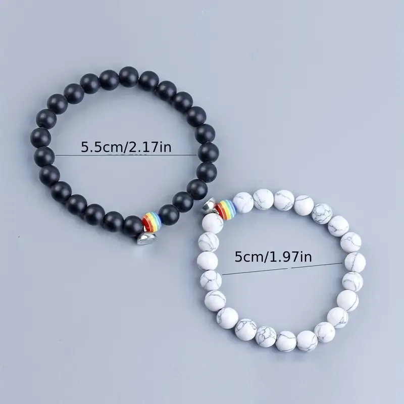 Rund Magnet Perle Paar Armbänder Gelenkarmband mit Regenbogenperle für Pärchen