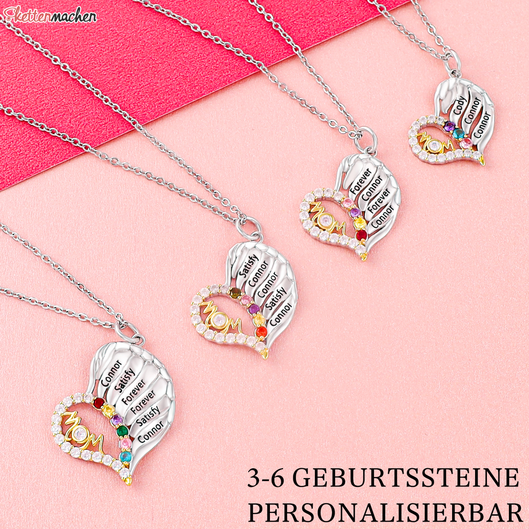 S925 Silber Gravur 4 Namen "MOM" Herz Halskette mit 4 Geburtssteinen