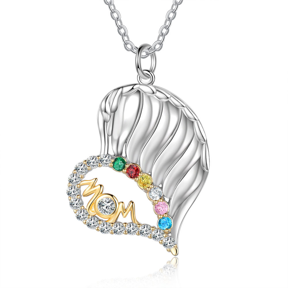 S925 Silber Gravur 6 Namen "MOM" Herz Halskette mit 6 Geburtssteinen
