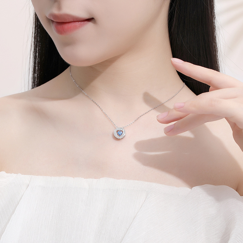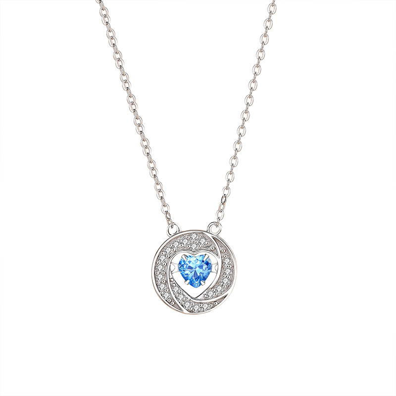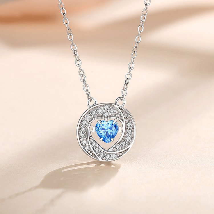S925 Silber Halskette Herz im Ring Tanzendes Herz