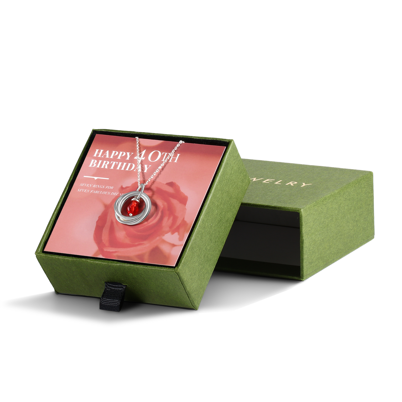 S925 Silber Jahrestag Geburtstag Roter Anhänger Halskette mit 4 Ringen Geschenk mit Karte