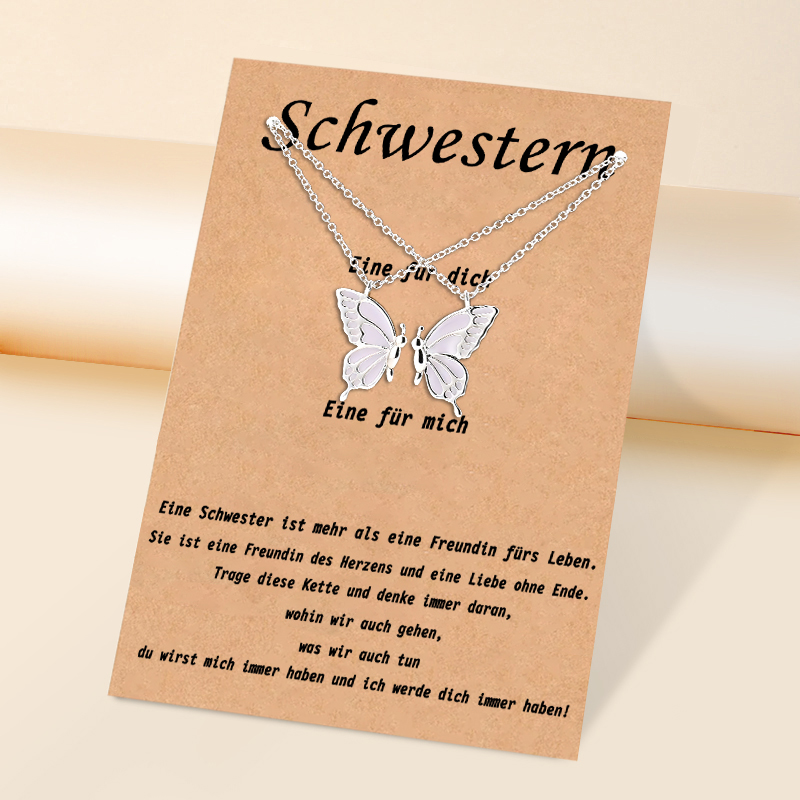 Schmetterling Halsketten Set-Schwester ist eine Freundin des Herzens und eine Liebe ohne Ende-Geschenk mit Nachrichtenkarte