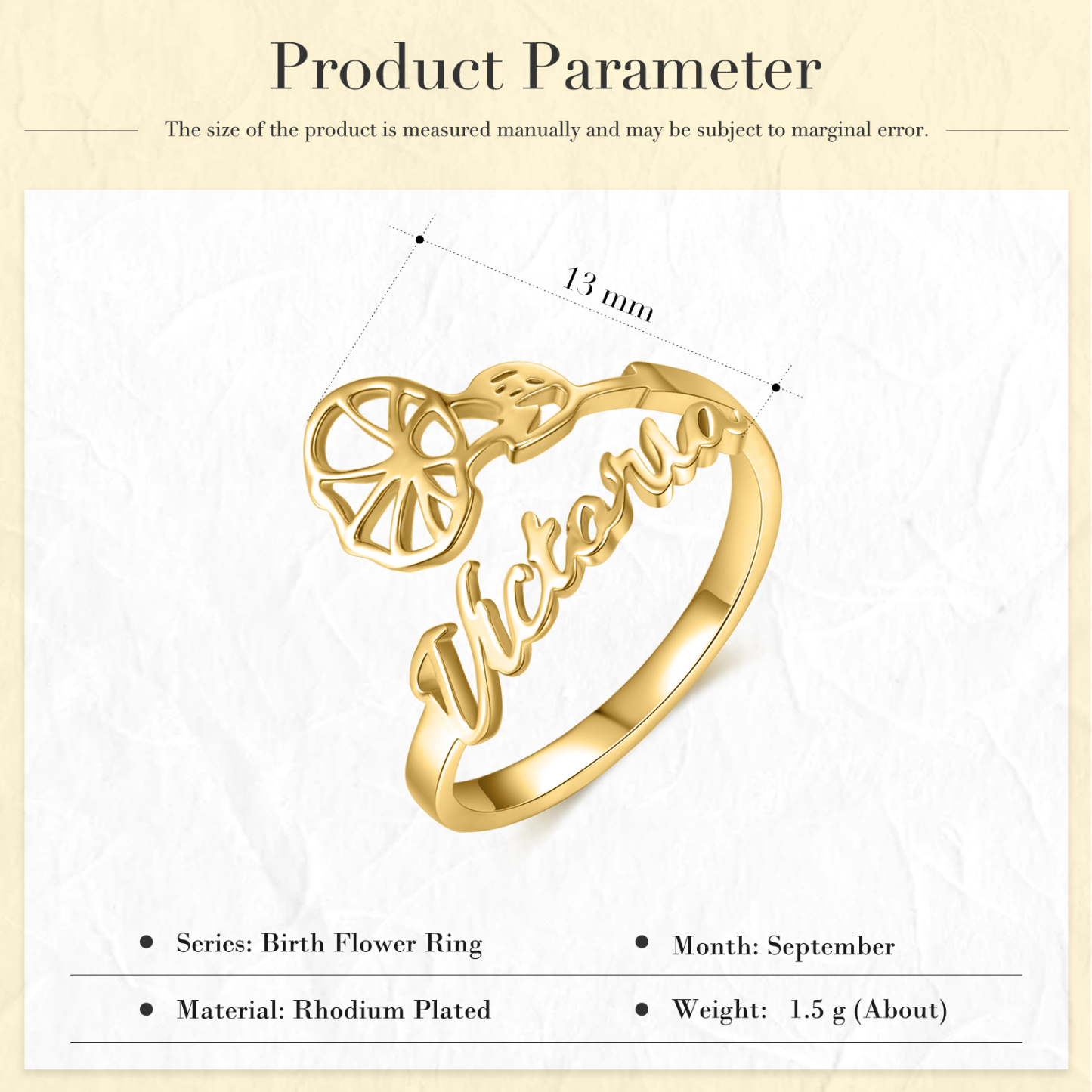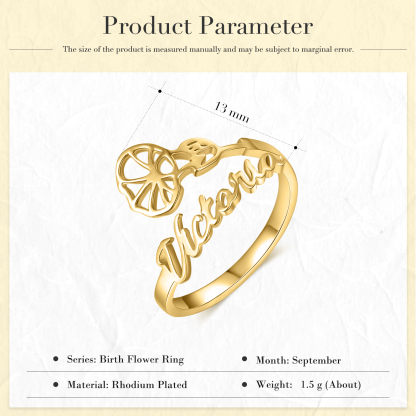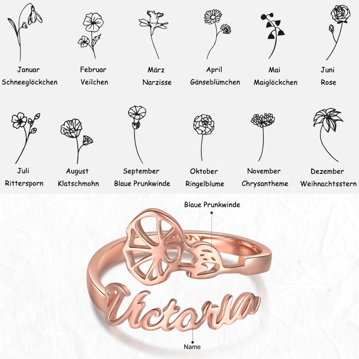 September Blaue Prunkwinde Personalisierte Name Ring - Geburtsblume Serie