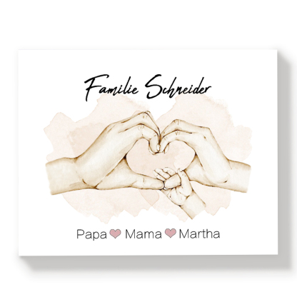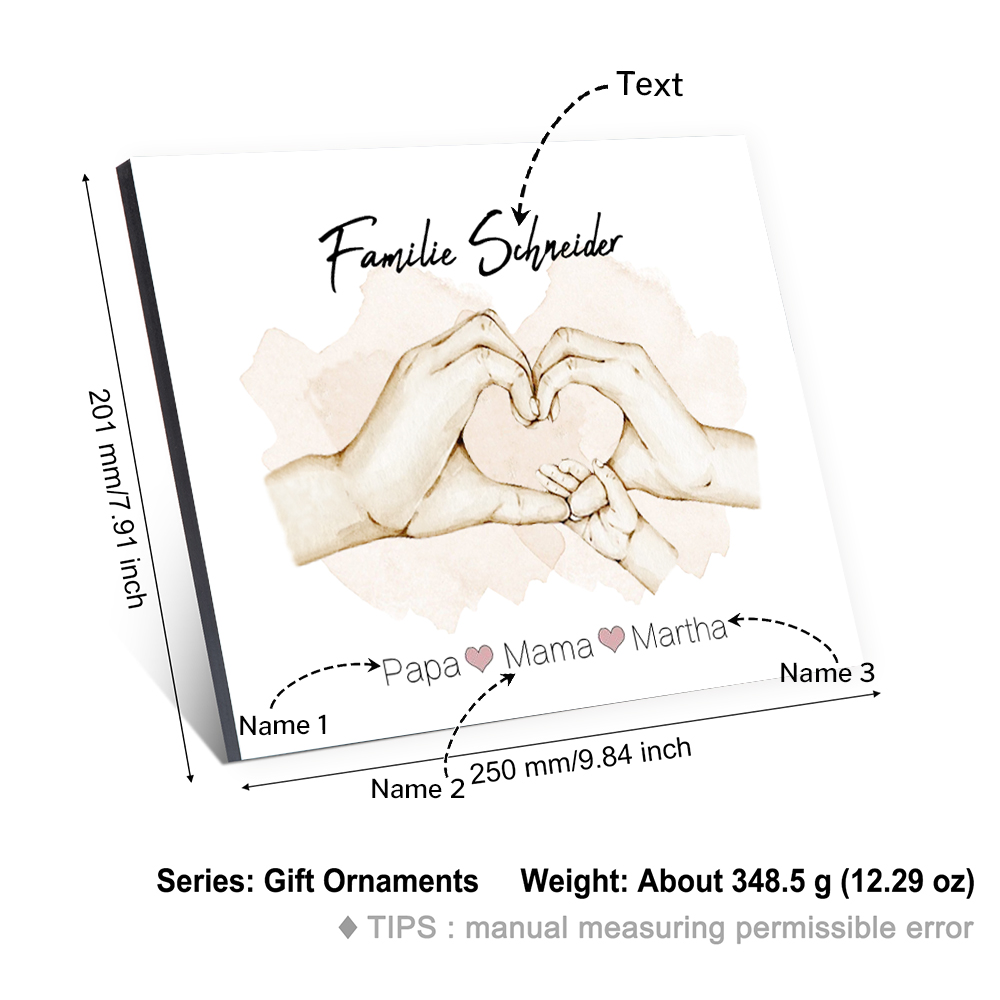 Familie Holzbild - Personalisierter Text & 3 Namen Familiehand Holzdekoration