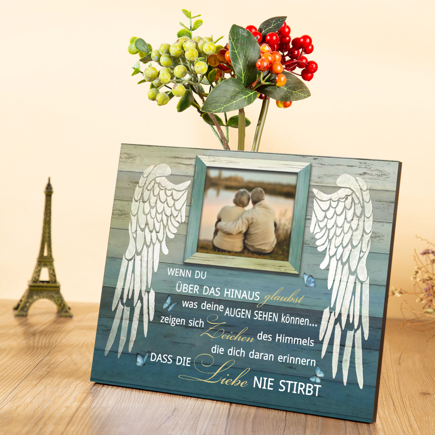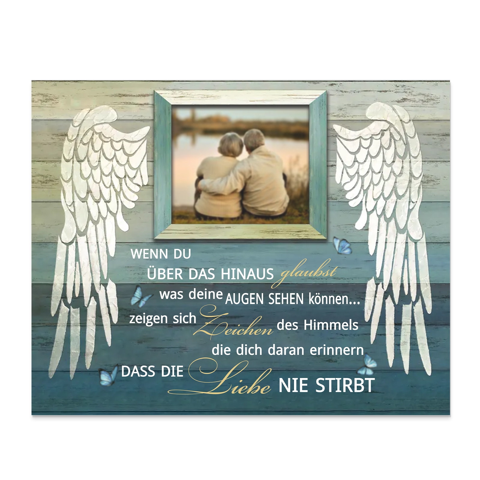 Trauer Holzbild-Personalisiertes Foto-Die Liebe stribt nie-Holzdekoration
