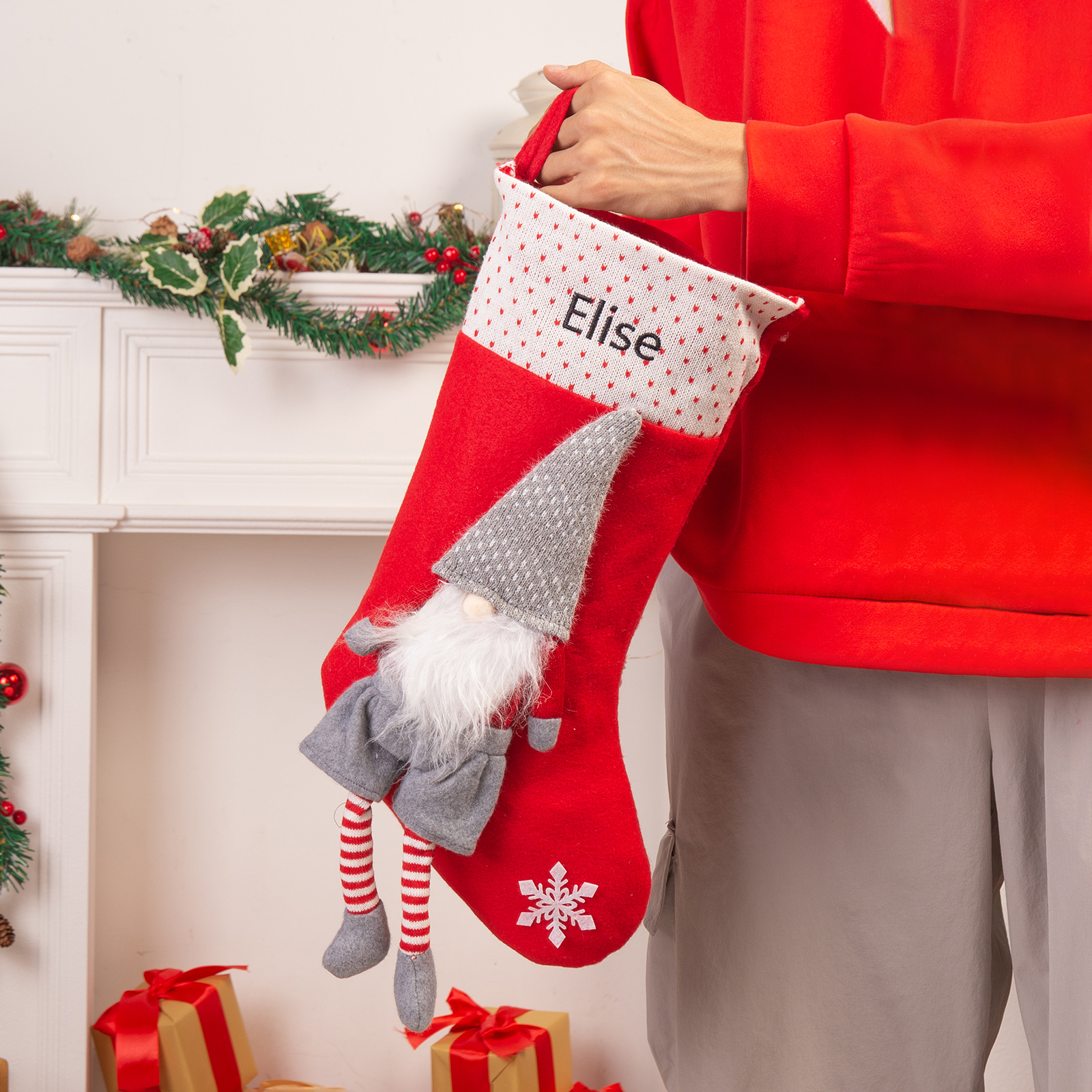 Weihnachtssocke-Personalisierter 1 Name Vliesstoff Zwerg Weihnachtsstrumpf-Weihnachtsornament